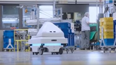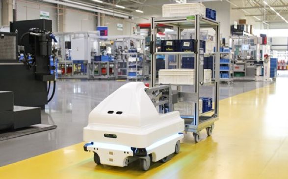 在 NIDEC GPM 圖林根州工廠的其中一個生產(chǎn)區(qū)域,一臺 MiR 機(jī)器人在近乎全自動化的工廠為員工提供材料。而其它兩臺移動機(jī)器人也在另一個區(qū)域運(yùn)行著,能為十條裝配線供給組件。這些工作之前都是由后勤人員完成。