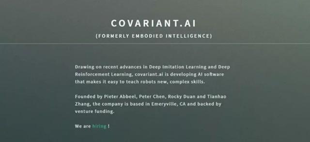美國加州創(chuàng)業(yè)公司Covariant.ai(原名為Embodied Intelligence),致力于開發(fā)“能夠教會(huì)機(jī)器人新的復(fù)雜技能的人工智能軟件?!惫净谏疃饶7聦W(xué)習(xí)和深度強(qiáng)化學(xué)習(xí)技術(shù),并利用虛擬現(xiàn)實(shí)(VR)技術(shù),來訓(xùn)練機(jī)器人掌握復(fù)雜技能,例如完成組裝電子設(shè)備等操作。
