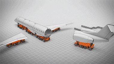 這種自由變向的設(shè)計令其非常適于大型部件的運輸與組裝,如組裝飛機機體等。