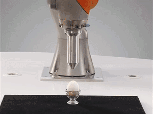 以50mm的速度抵近生雞蛋,雞蛋毫發(fā)無損