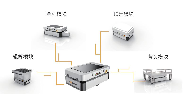 根據(jù)不同功能進(jìn)行了模塊化設(shè)計,用戶可根據(jù)自身產(chǎn)線的需求,選擇性搭配自己所需要的某一種或多種功能模塊,具體包括有潛伏牽引模塊、頂升模塊、輥筒線模塊、尾部的牽引模塊等,實現(xiàn)堆垛、搬運(yùn)、牽引等搬運(yùn)需求,達(dá)到一車多用的目的。