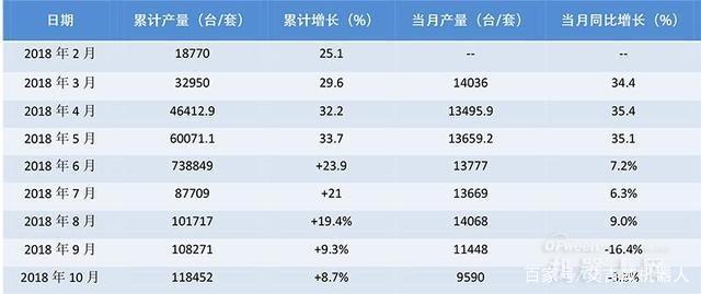 近日,工信部裝備工業(yè)發(fā)布官方統(tǒng)計,數(shù)據(jù)顯示2018年1月至10月,我國工業(yè)機(jī)器人產(chǎn)量為118452臺(套),同比增長8.7%,10月當(dāng)月產(chǎn)量為9590臺(套),比上年同月下降3.3%。