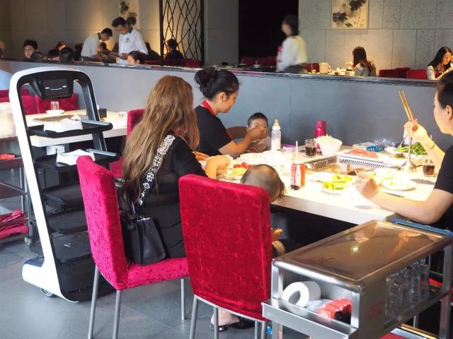 在海底撈的智慧火鍋餐廳里也能看到機(jī)器人自動入菜、上菜的身影。