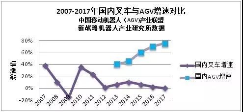 縱觀近十年國(guó)內(nèi)叉車的發(fā)展,自2012年開(kāi)始傳統(tǒng)叉車的銷量出現(xiàn)明顯下降;與此同時(shí),AGV叉車自2012年后,銷量一直保持著迅猛增長(zhǎng)的趨勢(shì)。