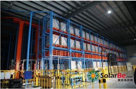 位于蘇州協(xié)鑫光伏西廠區(qū)的智能倉儲占地面積700余平方米,3層12排式貨架,托盤貨位828個(gè),比原先擴(kuò)容了45%,貨架最高處達(dá)6.8米,由AGV叉車、自動(dòng)傳輸帶、RGV搬運(yùn)車、雙向巷道堆垛機(jī)等智能設(shè)備組成,配合先進(jìn)軟件系統(tǒng),無需人工介入操作即可實(shí)現(xiàn)24小時(shí)出/入庫。