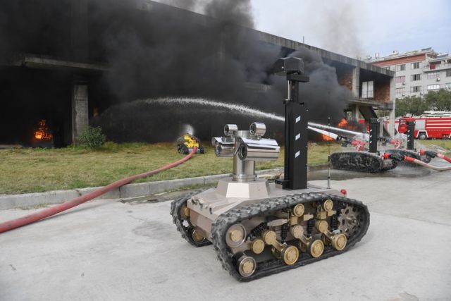 當(dāng)日,在福建省寧德福鼎市,60臺由我國中信重工開誠智能裝備有限公司自主研發(fā)的消防機(jī)器人交付,其中排煙機(jī)器人為省內(nèi)首次列裝并應(yīng)用于滅火演練,這是福建省內(nèi)交付的最大批次消防機(jī)器人。
