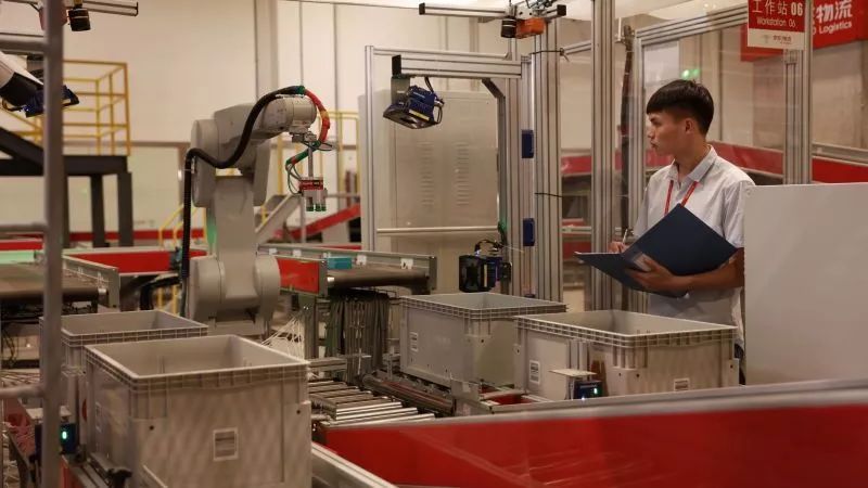 ▲云梯計劃學(xué)員鄒瑞在觀察六軸機(jī)器人的工作狀態(tài)