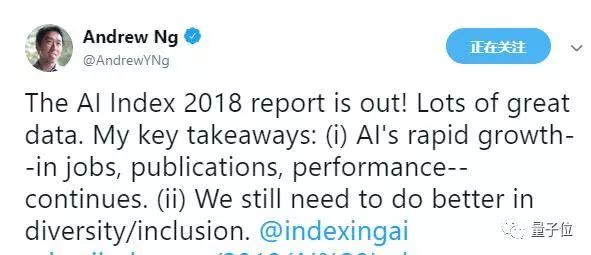 看過這份報告之后,人工智能大牛吳恩達總結了兩點:1、AI正在快速發(fā)展,不管是學術界還是工業(yè)界都是如此。2、AI的發(fā)展仍不均衡,在多樣性、包容性方面仍需努力。