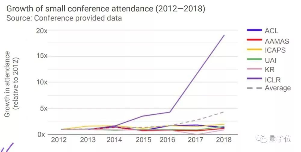 這里最突出的是,ICLR 2018的參會人數(shù)達到了2012年的20倍。