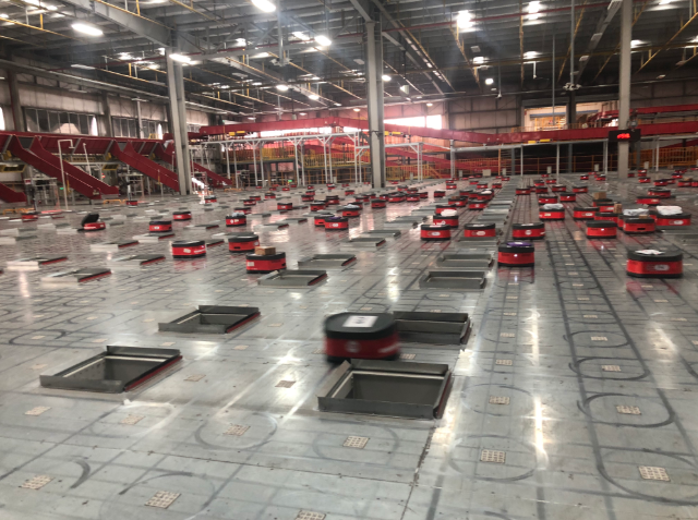 走進(jìn)亞洲一號(hào)智能機(jī)器人分揀中心,只見(jiàn)里面有幾百個(gè)用于分揀的機(jī)器人日以繼夜的忙碌著。與傳統(tǒng)分揀線相比,現(xiàn)場(chǎng)的工作人員并不多。現(xiàn)場(chǎng)正在作業(yè)的分揀員劉建啟告訴記者,目前機(jī)器人分揀精準(zhǔn)率能夠達(dá)到99.9%以上,相比人工分揀,更為高質(zhì)高效?!耙郧?,我們需要把貨物撿起來(lái),看面單上的識(shí)別號(hào),再投放到相應(yīng)的分揀框里面去,要耗費(fèi)大量的人力。現(xiàn)在只需要把面單朝上,平放在機(jī)器人上面,它自動(dòng)進(jìn)行分揀、投放?!?