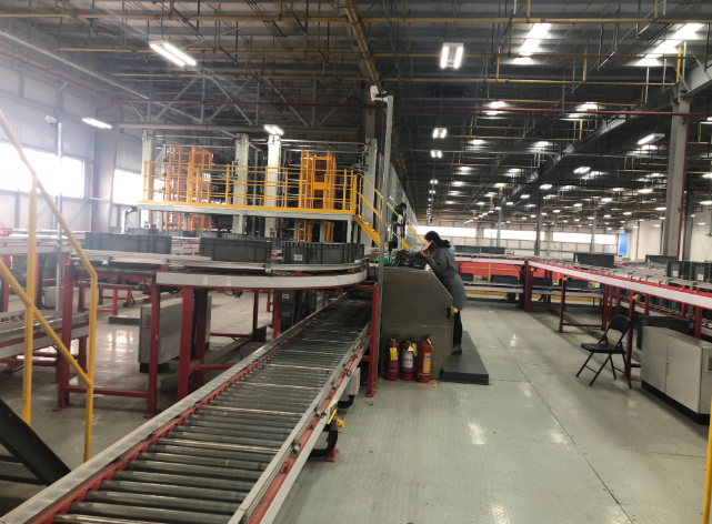 記者在現(xiàn)場(chǎng)看到,每個(gè)智能分揀機(jī)器人的頂部都有一個(gè)托盤,可自動(dòng)翻轉(zhuǎn)。它們有序的排著隊(duì),等待著操作人員將包裹放在自己的托盤上,接到任務(wù)后,它迅速識(shí)別,準(zhǔn)確找到自己投放的分揀口,自動(dòng)翻轉(zhuǎn)頂部托盤,將包裹投入口中。