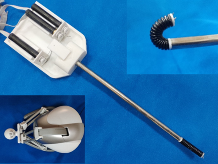 上圖上海交大附屬第一人民醫(yī)院教授董頻研發(fā)的喉部微創(chuàng)手術(shù)機(jī)器人,適用多種喉部手術(shù),可完成病變組織精準(zhǔn)咬切、電凝吸引、深腔空間縫合打結(jié)、射頻、激光多種刀具治療;同時(shí)該手術(shù)機(jī)器人擁有多傳感器定位系統(tǒng),用于增強(qiáng)現(xiàn)實(shí),實(shí)時(shí)定位,進(jìn)行手術(shù)規(guī)劃,其剛?cè)峥煽貦C(jī)械臂可以精準(zhǔn)建模,交互力感知。該項(xiàng)目被列入國家重點(diǎn)研發(fā)計(jì)劃,支撐喉鏡管腔內(nèi)自進(jìn)化、口腔種植專用手術(shù)機(jī)器人研發(fā)及評(píng)價(jià)改進(jìn)研究。
