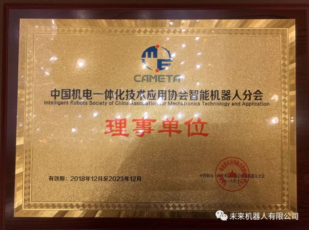 未來機(jī)器人榮獲協(xié)會(huì)智能機(jī)器人分會(huì)理事單位證書