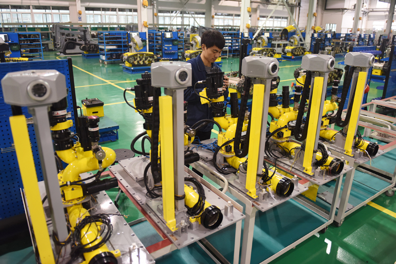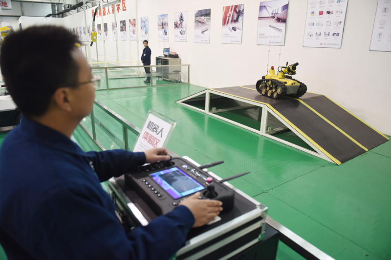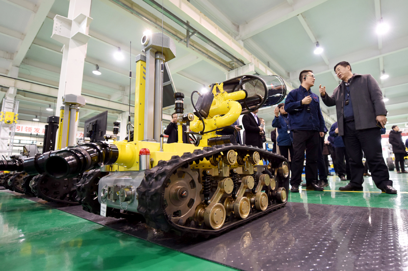 12月22日,工作人員在檢查消防機(jī)器人的上裝配件。
