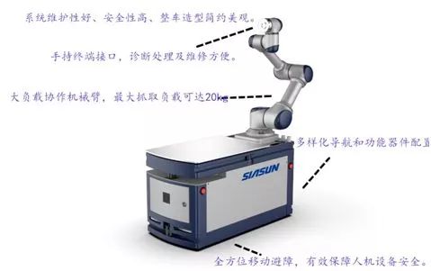 新松復(fù)合機(jī)器人HCR20作為國(guó)內(nèi)首臺(tái)20kg級(jí)智能型復(fù)合協(xié)作機(jī)器人,具有系統(tǒng)維護(hù)性好、安全性高、整車造型簡(jiǎn)約美觀的特征。