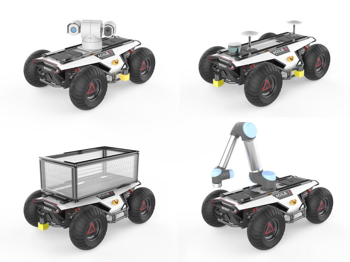 SCOUT的定位為全能型通用底盤,不僅適用于室內、戶外場景甚至崎嶇路徑下的多種場景,同時裝備了多種標準外部設備,預留了多種接口,方便二次開發(fā)。