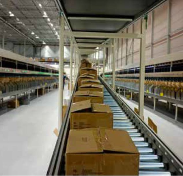 ? 設(shè)計(jì)并安裝了一個(gè)含有220個(gè)落袋的分揀系統(tǒng),每小時(shí)可輸送28,000箱貨物。