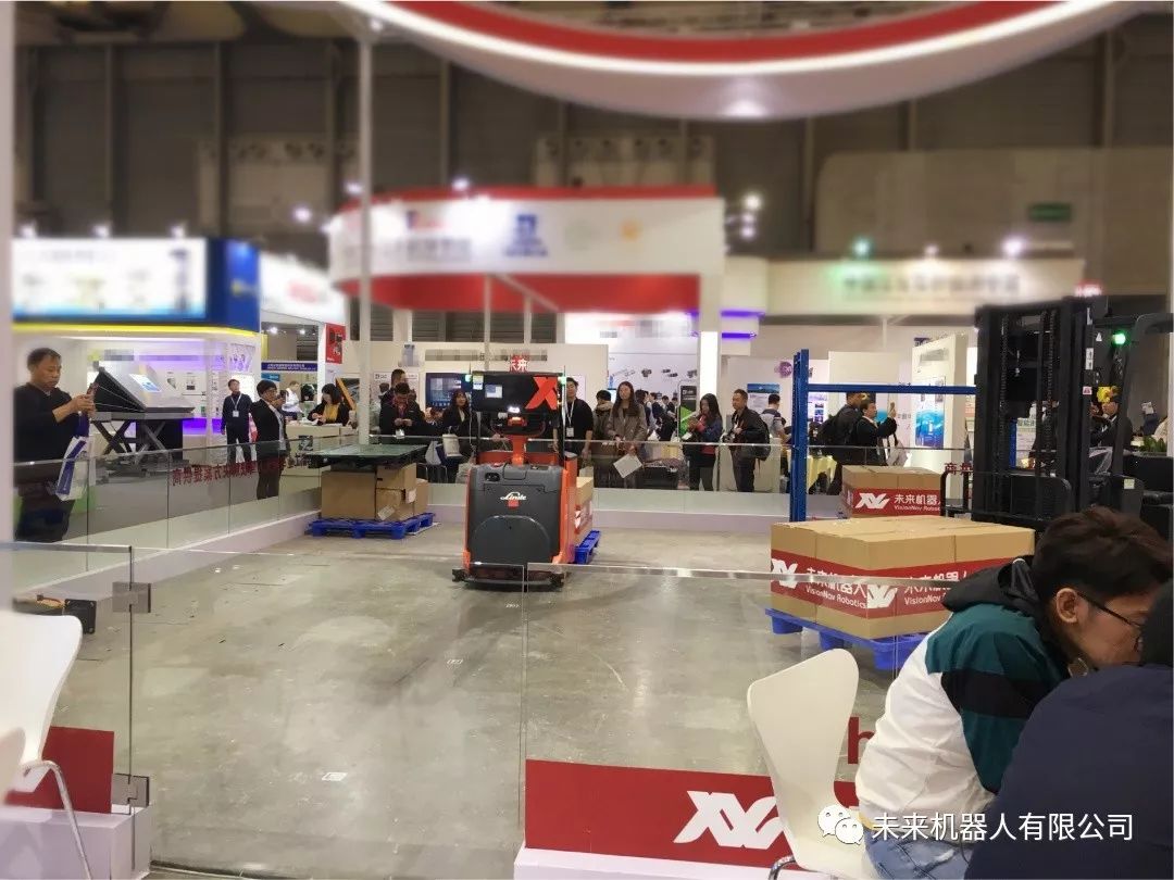 亞洲地區(qū)規(guī)模最大的物流展于2018年11月6日在上海新國際博覽中心隆重開幕,未來機(jī)器人閃亮登場,展示了以自然環(huán)境下低速視覺無人駕駛技術(shù)為核心的視覺導(dǎo)航系列產(chǎn)品:視覺導(dǎo)航托盤式無人叉車、視覺導(dǎo)航平衡重式無人叉車、視覺導(dǎo)航前移式無人叉車、視覺導(dǎo)航無人牽引車。異常震撼的視覺導(dǎo)航AGV盛宴在現(xiàn)場引起強(qiáng)勢圍觀。