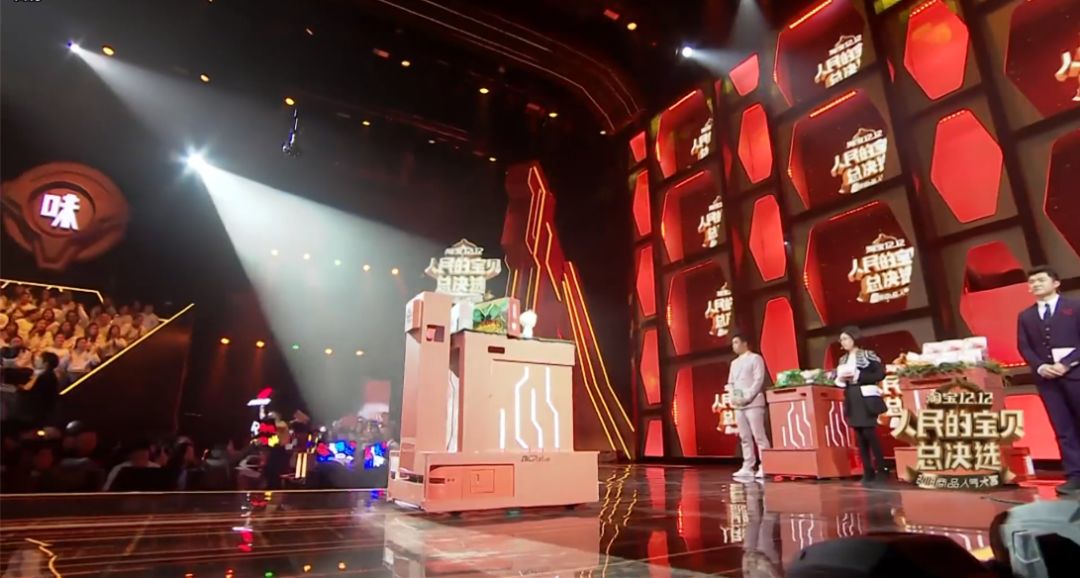 節(jié)目中,把“人民的寶貝”載到夢想舞臺的“頒獎禮儀”則是自主運輸機器人,這是雙12購物狂歡節(jié)首次與自主運輸機器人的跨界合作。機器人賦予商品全新的活力,展現(xiàn)“寶貝”獨特的風(fēng)采。同時,為了配合現(xiàn)場舞美效果,節(jié)目組的道具老師還為機器人精心打造一套專屬“制服”,讓機器人與“人民的寶貝”一起閃亮登臺“走秀”,征戰(zhàn)選秀最強C位。