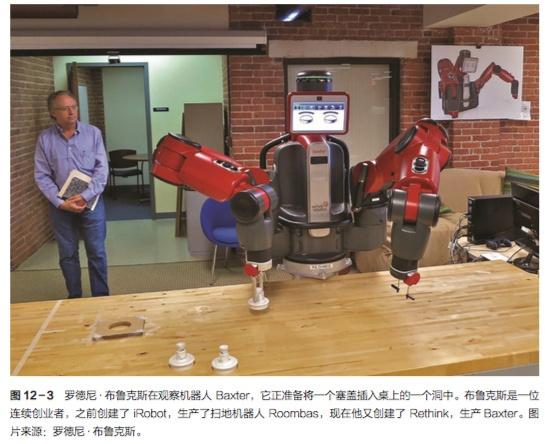 2008 年,布魯克斯創(chuàng)立了 Rethink Robotics公司,該公司設(shè)計出了一個關(guān)節(jié)柔韌,可以轉(zhuǎn)動手臂的機(jī)器人Baxter。它的每個手臂可以按要求來移動,還會自行編程以重復(fù)執(zhí)行過的動作順序,人們不必再編寫一個程序來移動 Baxter 的手臂了。