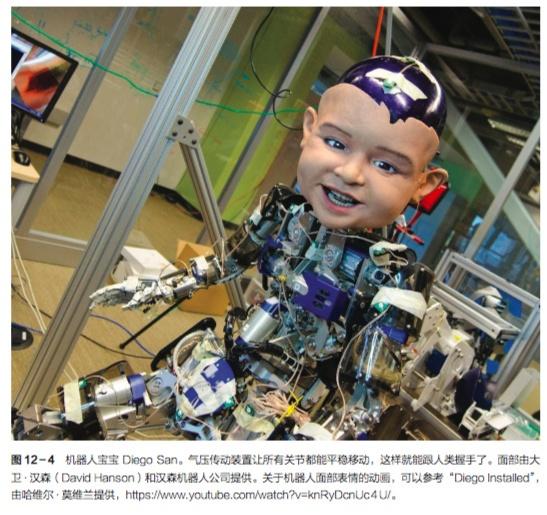 莫維蘭比布魯克斯更進(jìn)一步,開發(fā)出了一種名為“Diego San”(在日本制造)的機(jī)器人寶寶15,其電動機(jī)是氣動的(由氣壓驅(qū)動),對比大多數(shù)工業(yè)機(jī)器人使用的剛性轉(zhuǎn)矩電機(jī),Diego San 所有的 44 個關(guān)節(jié)都更柔軟。