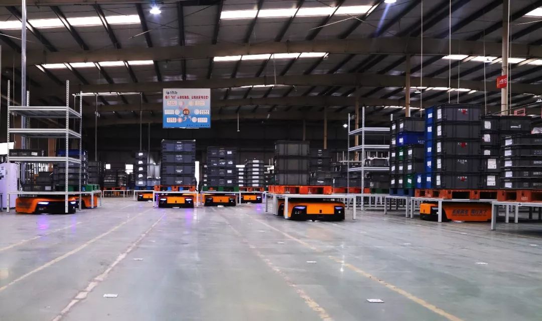 整個無人倉,面積達(dá)6000平方米,存儲庫位1469個,投入AGV小車40臺,采用背負(fù)式AGV替代人工進(jìn)行零件搬運(yùn),減少人員走動距離,實現(xiàn)零件的自動化歸位、揀選管理,由“人找貨”到“貨找人”進(jìn)行轉(zhuǎn)變。