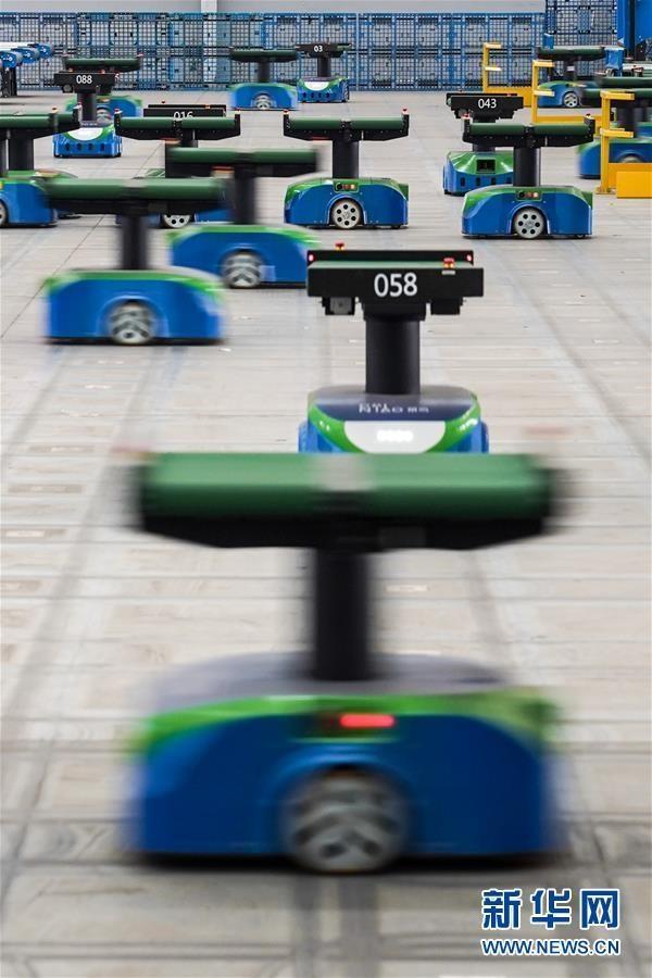 1月22日,物聯(lián)網(wǎng)分撥機(jī)器人進(jìn)行包裹分撥展示。 當(dāng)日,由阿里巴巴旗下物流平臺(tái)菜鳥(niǎo)網(wǎng)絡(luò)開(kāi)發(fā)的物聯(lián)網(wǎng)機(jī)器人分撥中心在南京正式啟用。本次啟用的物聯(lián)網(wǎng)機(jī)器人分撥中心面積約為2000平方米,共有100臺(tái)物聯(lián)網(wǎng)分撥機(jī)器人,主要用于中大件包裹分撥,機(jī)器人分撥系統(tǒng)可以處理超過(guò)九成商超類(lèi)包裹,預(yù)計(jì)比傳統(tǒng)人力分撥效率提升1.6倍。 新華社記者 李博 攝
