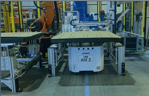 歐姆龍公司研發(fā)生產(chǎn)的自主導航車縮短了各個加工工作站、工作間之間的零部件運輸時間