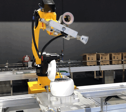 介紹:3號機器人“大哥” 身兼數(shù)職,通過快速更換夾具,先后驅(qū)動吸標(biāo)夾具和視覺外觀檢查夾具,無縫銜接完成貼標(biāo)、合蓋、檢測等任務(wù)。并對產(chǎn)品外觀作最后的檢查。