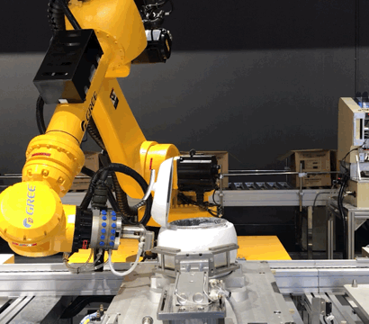介紹:6號機器人迅速夾取上層泡沫,放入箱子里,更好地保護箱中的“小蘋果”。完成這一系列工作之后,5號機器人“大哥”可以把裝有電飯煲和上下層泡沫的箱子放在自動線上,將電飯煲交給下一個“兄弟”了。