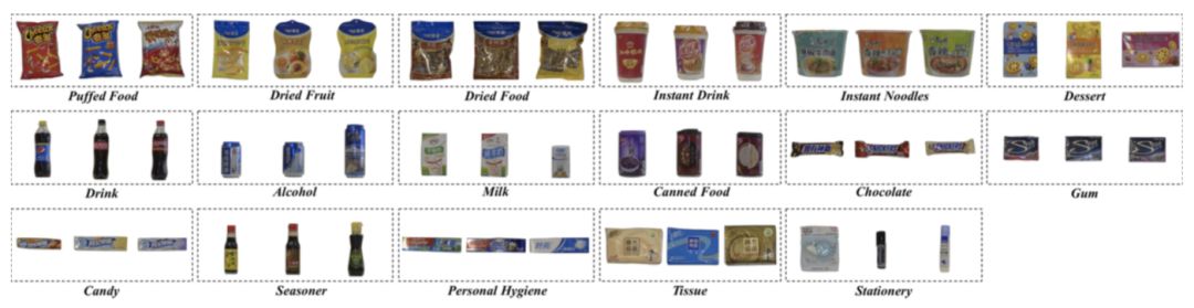 盡管存在上述問題,ACO 還是有著潛在的研究與商業(yè)價(jià)值。如果有標(biāo)注精良的數(shù)據(jù)集,這一問題或可迎刃而解。為此,曠視科技南京研究院打造了一個(gè)目前最大的商品識別數(shù)據(jù)集——RPC(Retail Product Checkout),來推動新零售自動收銀場景的相關(guān)研究和技術(shù)進(jìn)步,它的商品種類高達(dá) 200,圖像總量達(dá) 83k,真實(shí)模擬零售場景,且逼真度超過現(xiàn)有同類數(shù)據(jù)集,同時(shí)充分體現(xiàn)出 ACO 問題的細(xì)粒度特性。