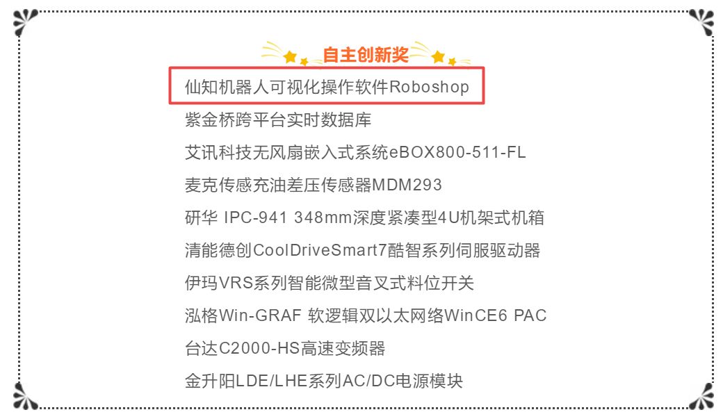 仙知機(jī)器人憑借著“可視化操作軟件Roboshop”突出的優(yōu)勢性能,榮獲“自主創(chuàng)新獎”!