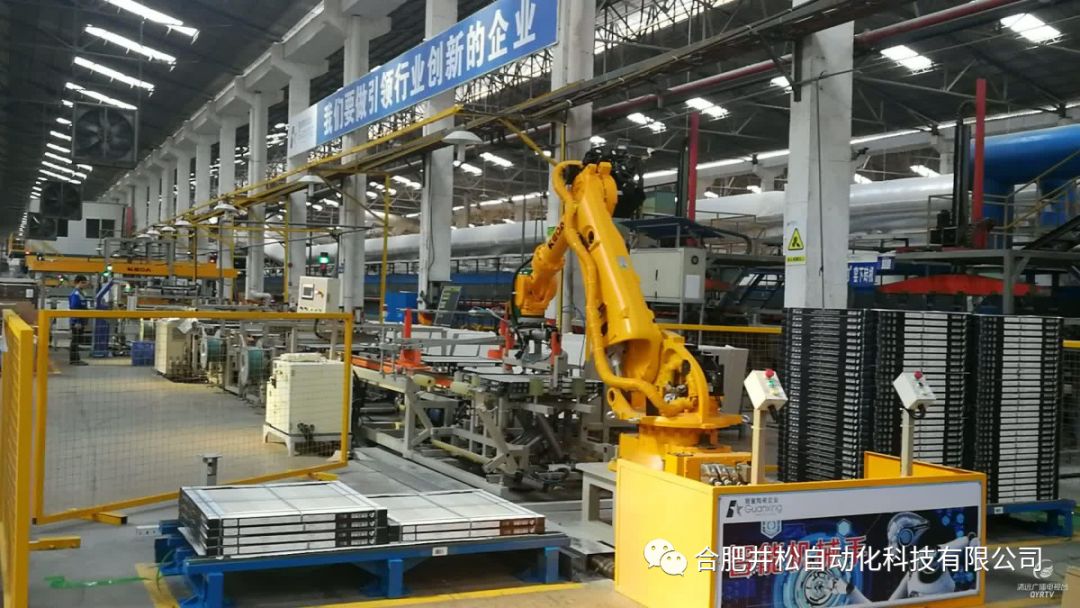 項(xiàng)目生產(chǎn)線上配置了車間機(jī)器人,可自動將產(chǎn)品打包并碼垛在貼有條碼的托盤上,借由叉車將托盤配送至提貨機(jī)的入貨口,進(jìn)行掃碼識別后提升機(jī)將其提升到二層連廊,由穿梭車接貨后輸送到立體倉庫處。