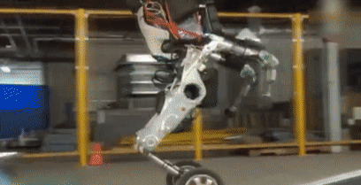 波士頓動力在這些年開發(fā)了好多機器人,其中,handle是雙足機器人,但是是靠兩個輪子來移動,雖然不能后空翻,但是它有屬于自己不一樣的靈活,可以高速行進中跳過障礙,上坡下坡也沒有問題,還有自己的招牌動作,那就是花樣滑冰里的旋轉(zhuǎn)。