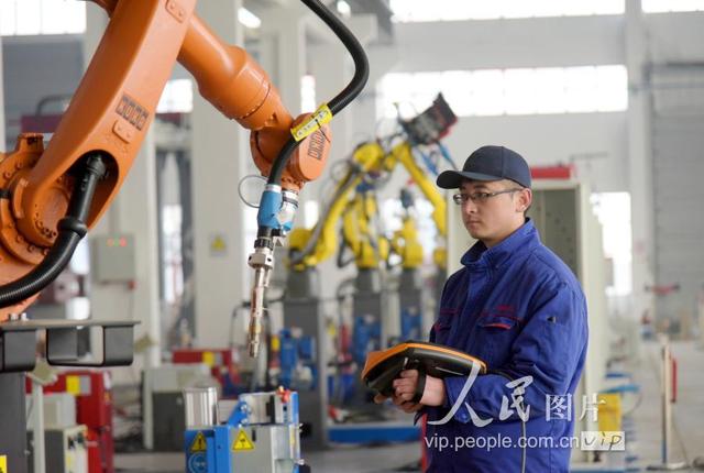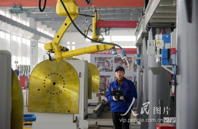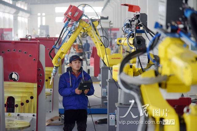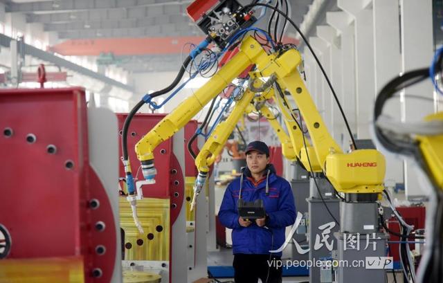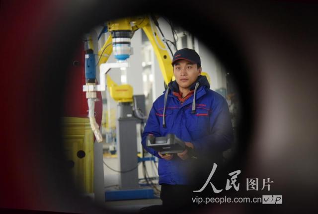 2019年2月25日,在位于江蘇省徐州經(jīng)濟(jì)技術(shù)開(kāi)發(fā)區(qū)的華恒智能機(jī)器人生產(chǎn)車(chē)間內(nèi),工作人員正在對(duì)機(jī)器人進(jìn)行測(cè)試。
