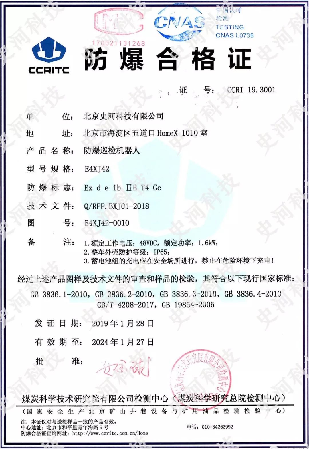 近日,史河科技自主研發(fā)的防爆輪式機器人正式獲得防爆合格證,該防爆證由煤炭科學研究總院檢測中心檢測出具。