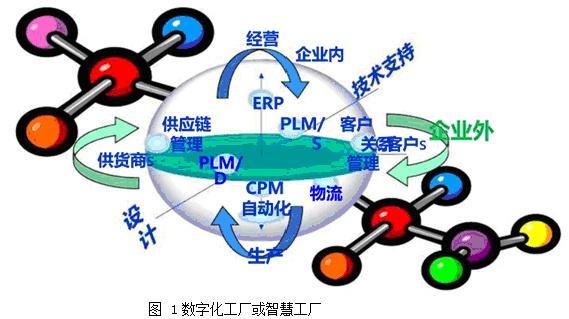 美國ARC將智慧工廠定義為:以制造為中心的數(shù)字制造、以設計為中心的數(shù)字制造、以管理為中心的數(shù)字制造,并考慮了原材料、能源供應、產(chǎn)品銷售的銷售供應,提出用工程技術(shù)、生產(chǎn)制造、供應鏈這三個維度來描述工廠的全部活動。通過建立描述這三個維度的信息模型,利用適當?shù)能浖軌蛲暾磉_圍繞產(chǎn)品設計、技術(shù)支持、生產(chǎn)制造以及原材料供應、銷售和市場相關(guān)的所有環(huán)節(jié)的活動。實時數(shù)據(jù)的支持,實時下達指令指導這些活動,全面優(yōu)化的并在三個維度之間交互,稱為數(shù)字化工廠或智慧工廠,如圖1所示。