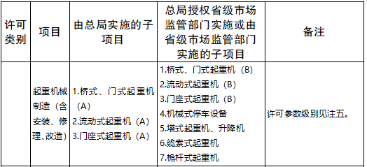 《特種設(shè)備生產(chǎn)單位許可目錄》(附件1)