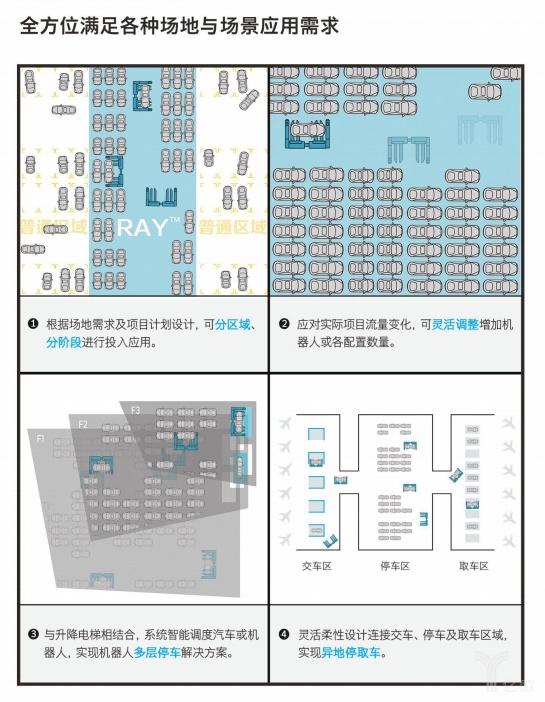 2. 柔性化布局:根據(jù)場(chǎng)地需求及項(xiàng)目計(jì)劃設(shè)計(jì),可分區(qū)域、分階段進(jìn)行投入應(yīng)用;應(yīng)對(duì)實(shí)際項(xiàng)目流量變化,可靈活調(diào)整增加機(jī)器人或各配置數(shù)量;與升降電梯相結(jié)合,系統(tǒng)智能調(diào)度汽車或機(jī)器人多層停車解決方案;靈活柔性設(shè)計(jì)連接交車、停車及取車區(qū)域,實(shí)現(xiàn)異地停取車;全方位滿足各種場(chǎng)地與場(chǎng)景應(yīng)用需求。