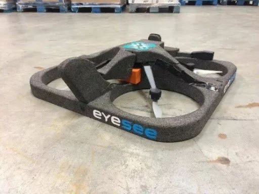 Eyesee無人機(jī)可自動(dòng)捕捉貨架托盤上貨物的信息,從而自動(dòng)完成存取貨物并記錄庫存。機(jī)身四周安裝有傳感器和攝像頭,360°防撞傳感器和接近物體檢測器以及用于掃碼的成像儀,可以處理所有條形碼格式的信息。管理員對(duì)無人機(jī)下達(dá)指令,無人機(jī)接收指令后便開始在倉庫內(nèi)進(jìn)行搜索,鎖定制定商品,然后飛到被鎖定的商品面前,進(jìn)行定位,再通過視覺快速掃描條碼,識(shí)別、讀取條碼,將貨物記錄到系統(tǒng)里或反饋到WMS系統(tǒng),自動(dòng)完成存取貨物并記錄庫存量等一系列流程。