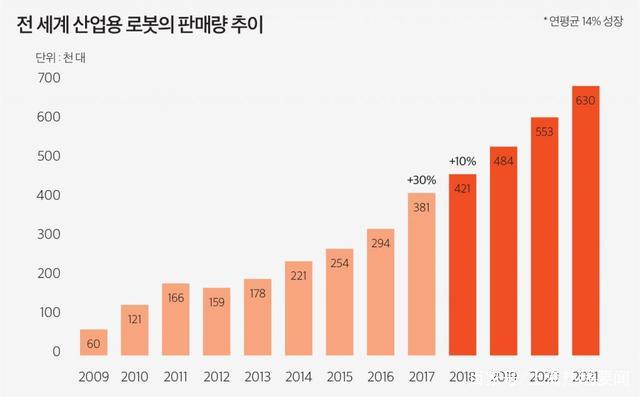 據(jù)韓國朝鮮日報報道:為了改變日本在世界工業(yè)機器人市場上的壟斷地位,各國正在展開猛烈的追擊,都認為不能錯過這樣一個爆炸性增長的市場。據(jù)美國市場調(diào)查企業(yè)M&M的預測,到2023年,世界產(chǎn)業(yè)機器人市場規(guī)模將達到717億美元。 這是國際機器人聯(lián)盟(IFR)發(fā)表的,2017年世界產(chǎn)業(yè)用機器人市場規(guī)模(162億美元)的4倍以上。