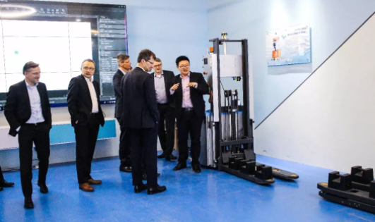 西門子研究院領(lǐng)導(dǎo)一行先后參觀了仙知展廳、激光導(dǎo)航移動(dòng)機(jī)器人實(shí)驗(yàn)室等展區(qū),并對智能工廠物流系統(tǒng)化解決方案、移動(dòng)機(jī)器人定位導(dǎo)航等關(guān)鍵技術(shù)及項(xiàng)目落地情況進(jìn)行了詳細(xì)的詢問,仙知機(jī)器人總經(jīng)理趙越先生給予了一一解答,西門子研究院領(lǐng)導(dǎo)對仙知自主研發(fā)的多機(jī)器人調(diào)度系統(tǒng)RoboRoute、可視化操作軟件Roboshop、AMB系列無人搬運(yùn)底盤等創(chuàng)新成果表示贊揚(yáng)和肯定。