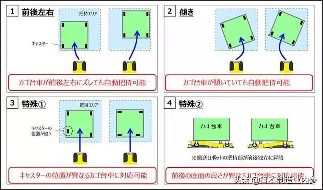 此外,「STR-100」可以自主識(shí)別臺(tái)車的位置,自動(dòng)進(jìn)入臺(tái)車的底部。即使臺(tái)車前后左右有所偏差、傾斜,也能自動(dòng)進(jìn)入。