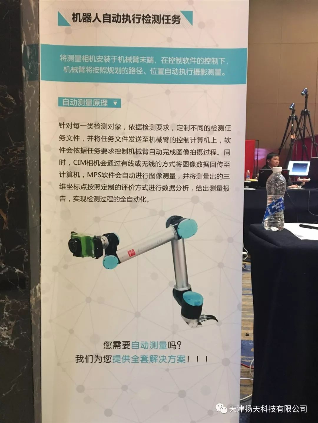 “第四屆全國大尺寸幾何測量新技術(shù)研討會(huì)”于 2019年3月6日至8 日在鄭州市鄭東新區(qū)美盛喜來登酒店隆重召開。會(huì)上,10余位專家、學(xué)者分享了大尺寸精密測量、智能測量、敏捷測量等領(lǐng)域的新技術(shù)。揚(yáng)天科技的10kg協(xié)作機(jī)器人搭載CIM智能測量相機(jī)集成項(xiàng)目作為典型應(yīng)用案例在會(huì)議上進(jìn)行展示。