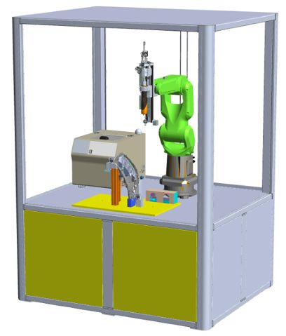 新型固定式擰緊模組,固定于SR-6iA機器人端,人員手工上下料完成后退出光柵區(qū)域啟動設(shè)備,機器人完成不同深度螺絲擰緊需求后復位