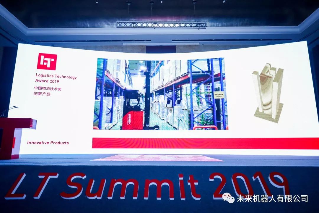 未來機器人首席執(zhí)行官李陸洋博士出席峰會并代表公司上臺領(lǐng)取2019LT中國物流技術(shù)獎—創(chuàng)新產(chǎn)品獎。