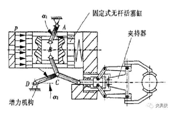 5.固定式無(wú)桿活塞缸驅(qū)動(dòng)的增力機(jī)構(gòu)