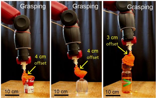 目前的機(jī)械臂能抓取的物品種類極其有限——要么不能太重,要么形狀有要求,例如方形、圓柱形等。