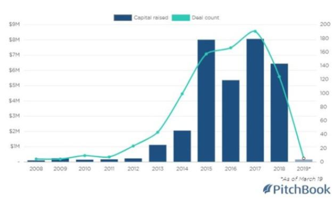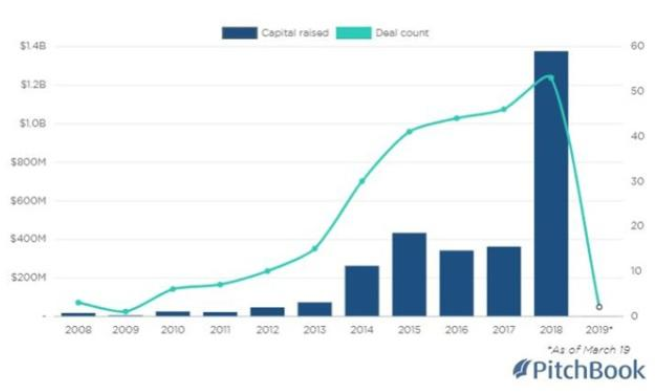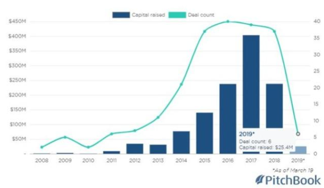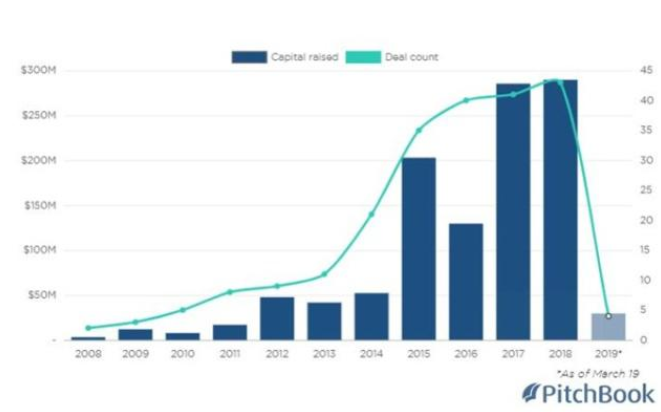 下圖分別顯示了風(fēng)險投資和孵化器投資數(shù)量和金額,2019年后者明顯比前者下降,這可能是各種行業(yè)的加速器輪次,業(yè)內(nèi)日益成熟的跡象或全球整體減少: