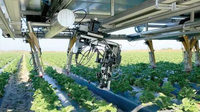 已經(jīng)獲得六項(xiàng)專利的Harvest Croo技術(shù)看起來更像是一排草莓植物上滾動(dòng)的卡車床。